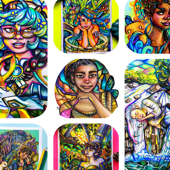 My Illustration style uses a combination of Traditional media. I Illustrate stylistic and semi-realistic portraits, whimsical-esque characters and fantasy scenescapes! My joy is bringing to life your ideas or capturing you or a loved one in a bold, colourful and uplifting style!Below I’ve put together all the details you’ll need to place an order with me.